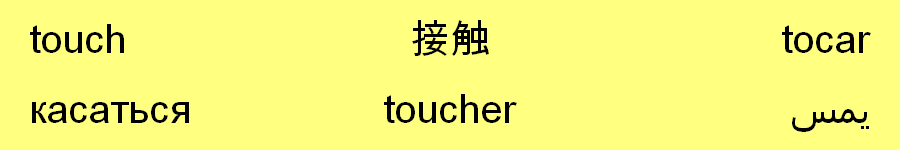 1-22. touch, touches, to touch, touching, touched, is touching.