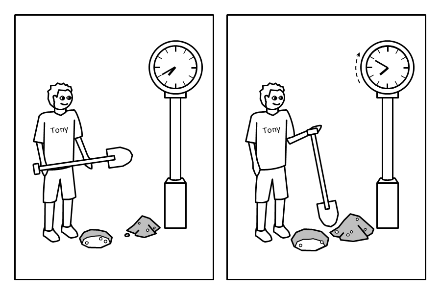 Tony does something for a short time.