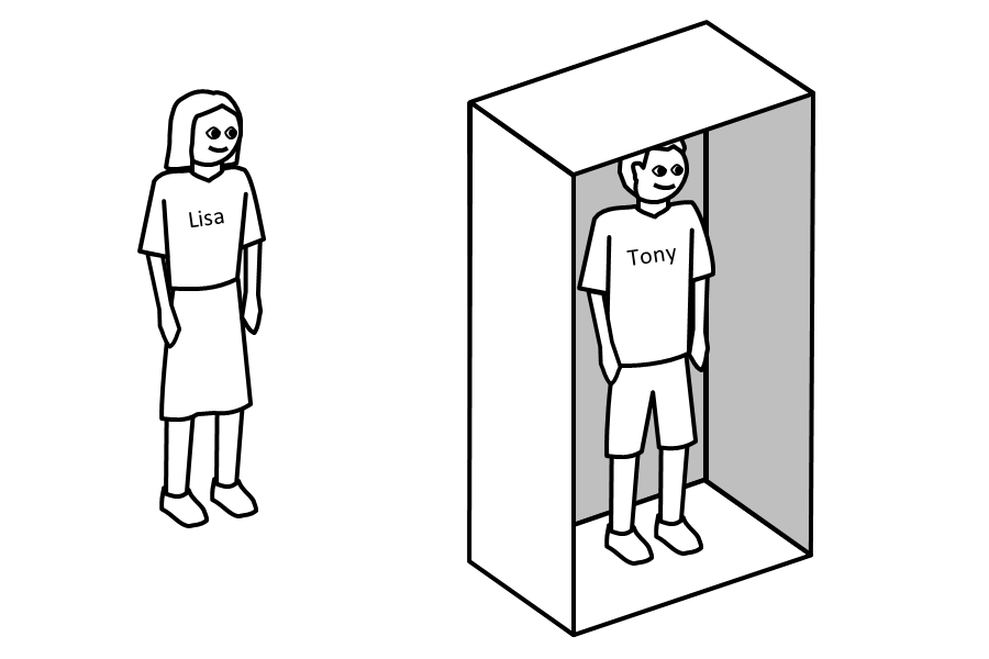 Tony hears Lisa. Because of this, Tony says: "I am inside."