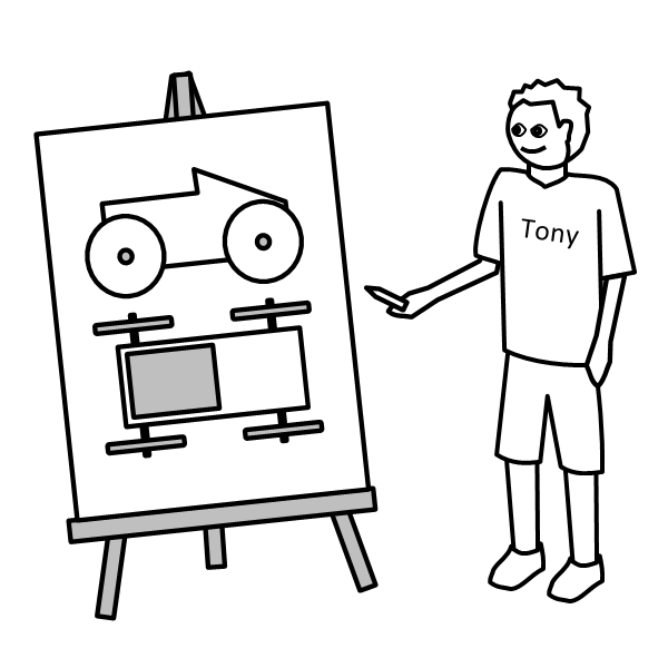 [You draw something.] = You mark a surface. These marks are not the same as what people use to write words. When people see these marks, they see shapes that look like other things people can see.