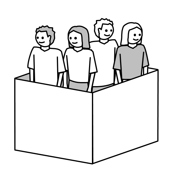 [X is a group of things.] = There are two or more things in a place, but you think about them like they are one thing. You think like this: X is one thing, and these two or more things are like parts of X or like things inside X.