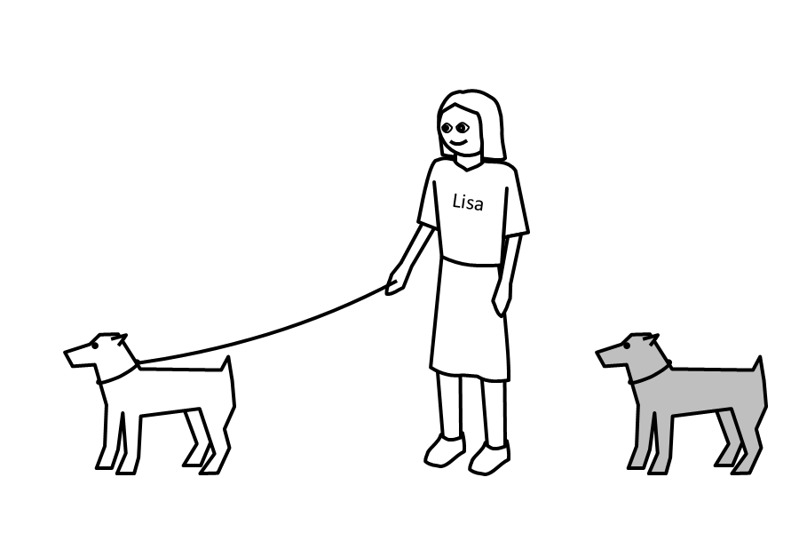 Lisa is holding one end of something long.