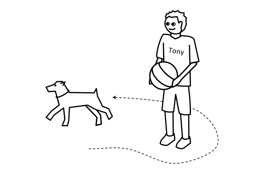 Tony is holding something round.