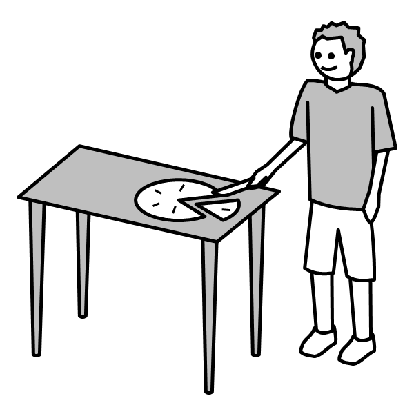 [Something cuts X.] = X is something solid. Something causes two parts of X not to be connected, like this: Something hard and very thin presses X and moves between two parts of X. Because of this, these two parts of X become not connected. These two parts of X were connected before, but after this thin thing presses between them, they are not connected.