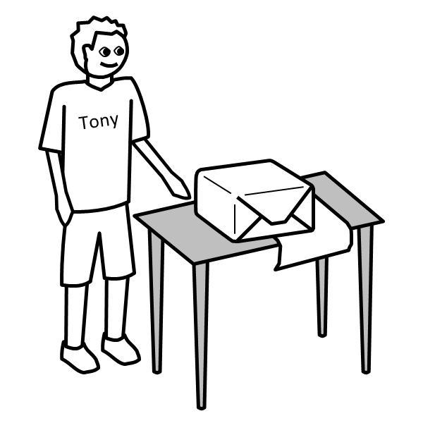 Tony wants to give something to Lisa, but he does not want Lisa to see what it is.