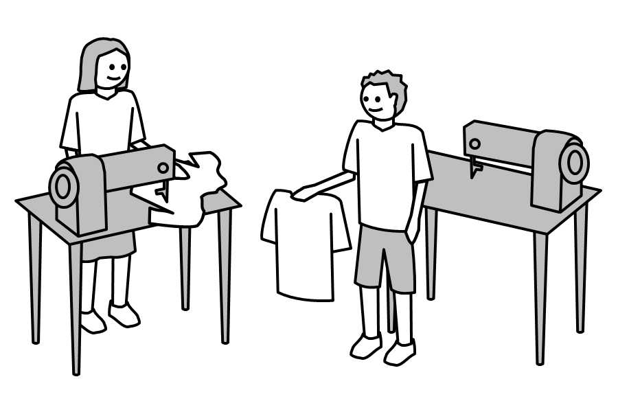 [I used a piece of cloth to make clothing that covers my legs and part of my body above my legs.]