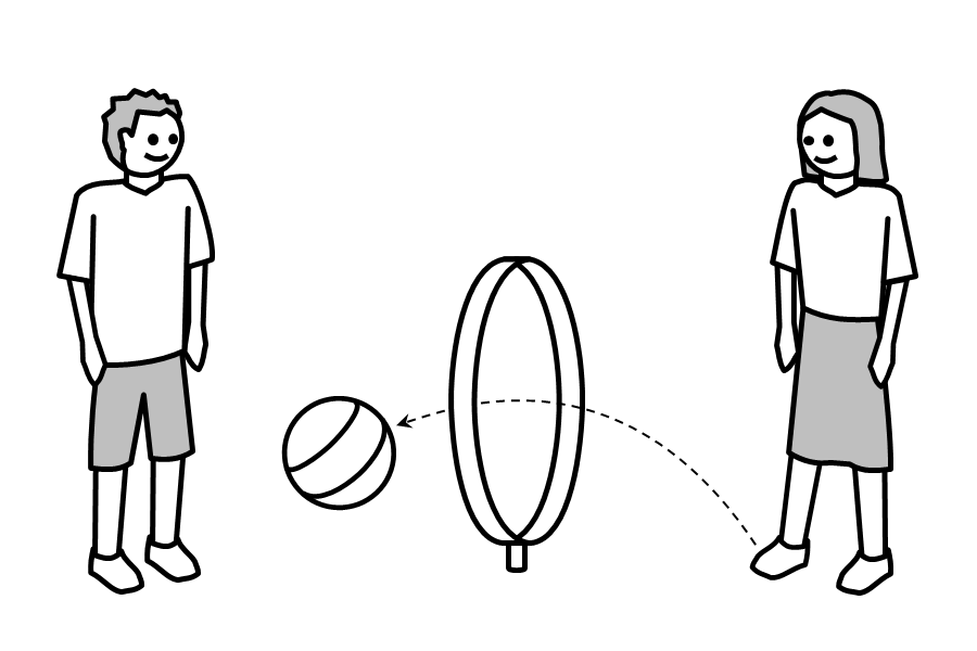 [Tony and Lisa played a game, trying to move a round thing into a hole.]